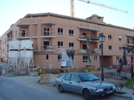 Excavación del solar en zona de piedra, utilizando maquinaria pesada para su picado.
